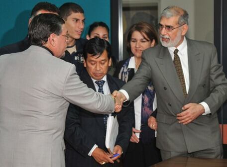 El exvicepresidente de Ecuador Alberto Dahik (1992-1995) llegó a las 15:55 a la Secretaría de la Corte de Justicia, acatando la medida cautelar dispuesta por el juez Hernán Ulloa Parada, quien sustituyó la prisión preventiva que existía en su contra.