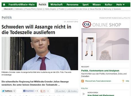 La Justicia sueca no extraditará al fundador de WikiLeaks, Julian Assange, a Estados Unidos en el caso de que éste pudiese llegar a ser condenado a la pena de muerte en aquel país por revelar secretos de Estado a través de su página web.