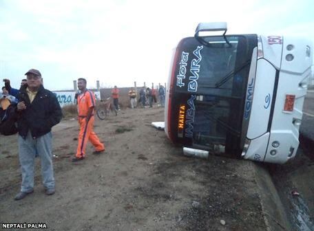 Bus de Flota Imbabura se volcó en Manabí