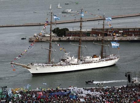 MAR DEL PLATA, ARGENTINA .- La fragata 'Libertad' arribó este miércoles al puerto argentino de Mar del Plata (400 km al sur de Buenos Aires) tras permanecer embargada en el puerto de Tema (Ghana) durante 78 días debido a una demanda de fondos especulativos.