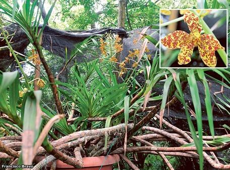 De color amarillo con manchas rojas y negras es la flor que brotó hace quince días de una orquídea gigante que se encuentra en el Jardín Botánico de Guayaquil, que es considerada la más grande del mundo por su peso y tamaño.