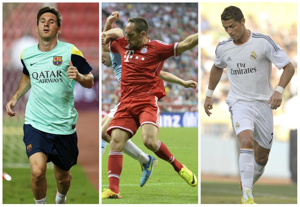 El extremo del Bayern Munich Franck Ribéry se unió el martes a Lionel Messi y Cristiano Ronaldo en la terna que competirá por el premio al Mejor Jugador en Europa de la UEFA de la temporada 2012-13.