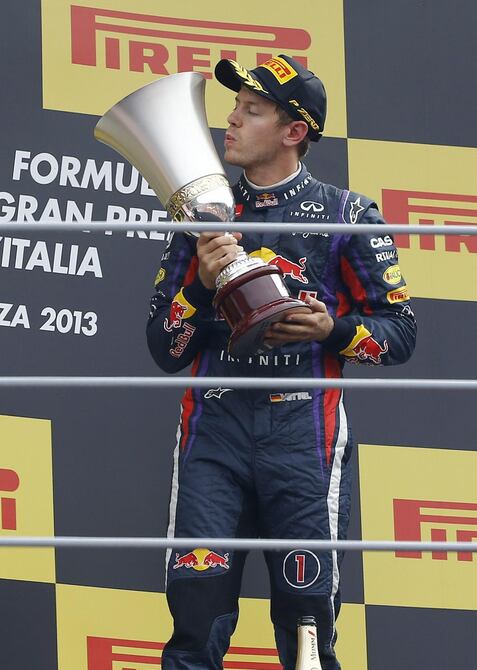 El alemán Sebastian Vettel (Red Bull) ganó el Gran Premio de Italia, duodécima prueba de la temporada 2013 de Fórmula 1, delante del español Fernando Alonso (Ferrari) y del australiano Mark Webber (Red Bull), este domingo en Monza.