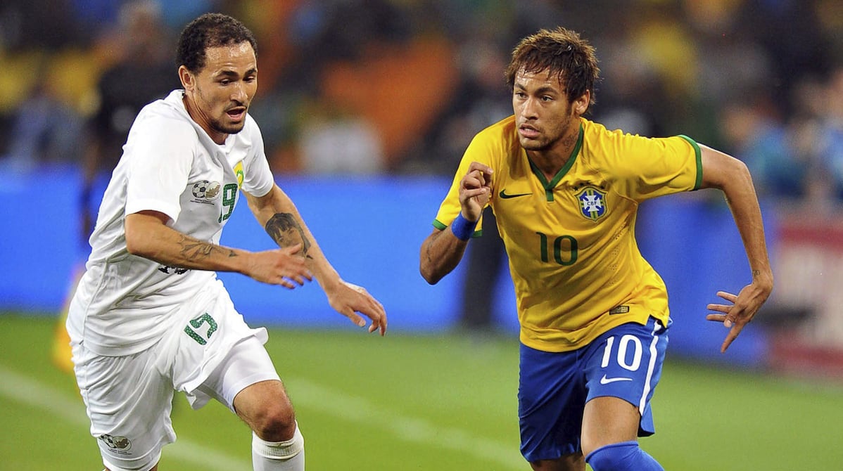 El delantero Neymar marcó ayer tres tantos y ayudó a la selección brasileña de fútbol a golear 5-0 a Sudáfrica en un amistoso en el estadio donde se jugó la final del Mundial 2010, en su último encuentro antes de dar a conocer el plantel con el que tratará de levantar la Copa por sexta vez en su historia.