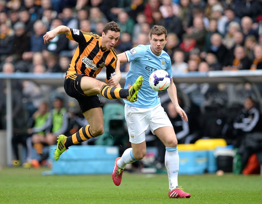 Pese a quedarse con diez hombres por la expulsión de su capitán, Vincent Kompany, Manchester City venció ayer a Hull por 2-0, con goles de David Silva y Edin Dzeko, para colocarse a seis puntos del líder de la liga Premier, Chelsea, que cayó 0-1 ante el Aston Villa.