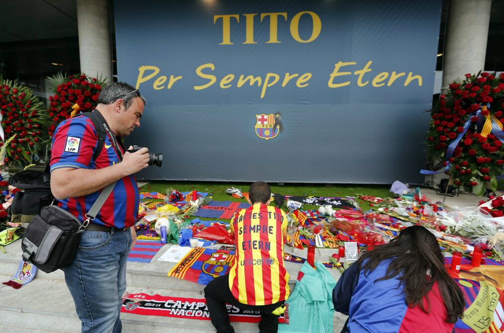 Socios azulgranas, aficionados al fútbol, representantes del mundo político y deportivo así como la junta directiva y la plantilla al completo del FC Barcelona, han dado el último adiós a Francesc Tito Vilanova, que falleció ayer a los 45 años, en una jornada triste en el que el Camp Nou se ha vestido de luto para despedir a su exentrenador.