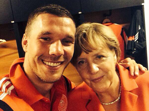 La autofoto o "selfie" que el delantero alemán Lukas Podolski se tomó con la canciller Angela Merkel en el Mundial de fútbol de Brasil se convirtió este martes en todo un éxito en las redes sociales.