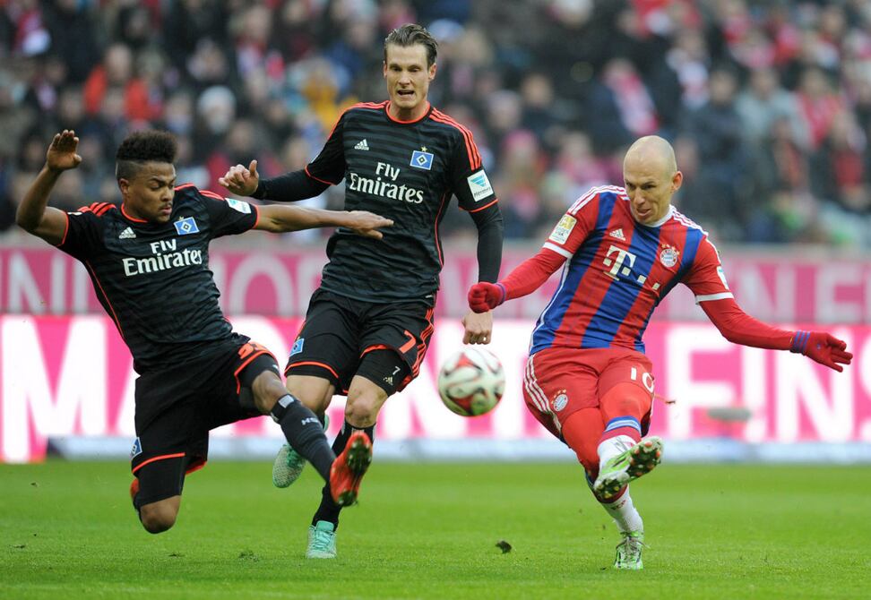 El Bayern Munich (1º), que había comenzado el 2015 con una derrota, un empate y una victoria, confirmó su recuperación al golear 8-0 al Hamburgo (12º), este sábado en la 21ª jornada, en la que el Wolfsburgo (2º) logró una sufrida victoria 5-4 en terreno del Bayer Leverkusen (6º).