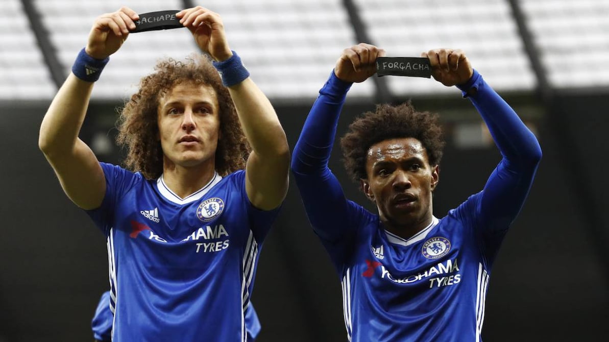 David Luiz, Diego Costa y Willian remontaron el partido para el Chelsea contra el Manchester City y recordaron a las víctimas del Chapecoense mostrando el mensaje "fuerza Chape" que lucían en sus brazaletes negros.