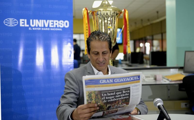 Cevallos recorre los medios luciendo la copa. En este Diario confirmó la partida del goleador torero.