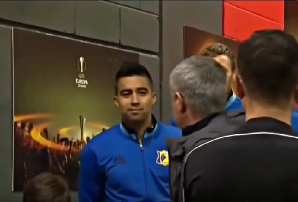 Antes de que comenzara el partido entre Manchester United y Rostov por los octavos de final de la Europa League, el técnico de los 'Diablos Rojos', José Mourinho saludó al ecuatoriano Cristhian Noboa, del equipo ruso.