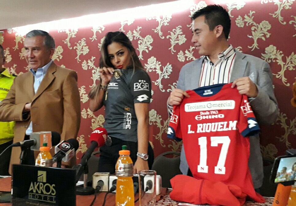 Visiblemente emocionada y en una jovial aparición ante la prensa, la modelo paraguaya Larissa Riquelme fue presentada esta mañana por la directiva de El Nacional como su flamante fichaje para una activación de socios que se cumplirá este fin de semana.