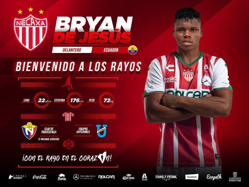 El futbolista ecuatoriano Bryan De Jesús, de 23 años, fue anunciado ayer como nuevo fichaje del Necaxa de México.