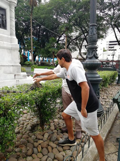 Aprovechando que están hospedados en pleno centro de Guayaquil, los jugadores del equipo paraguayo General Díaz visitaron este lunes el parque Seminario, uno de los más atractivos de la ciudad por el contacto cercano que las personas pueden tener con las iguanas.