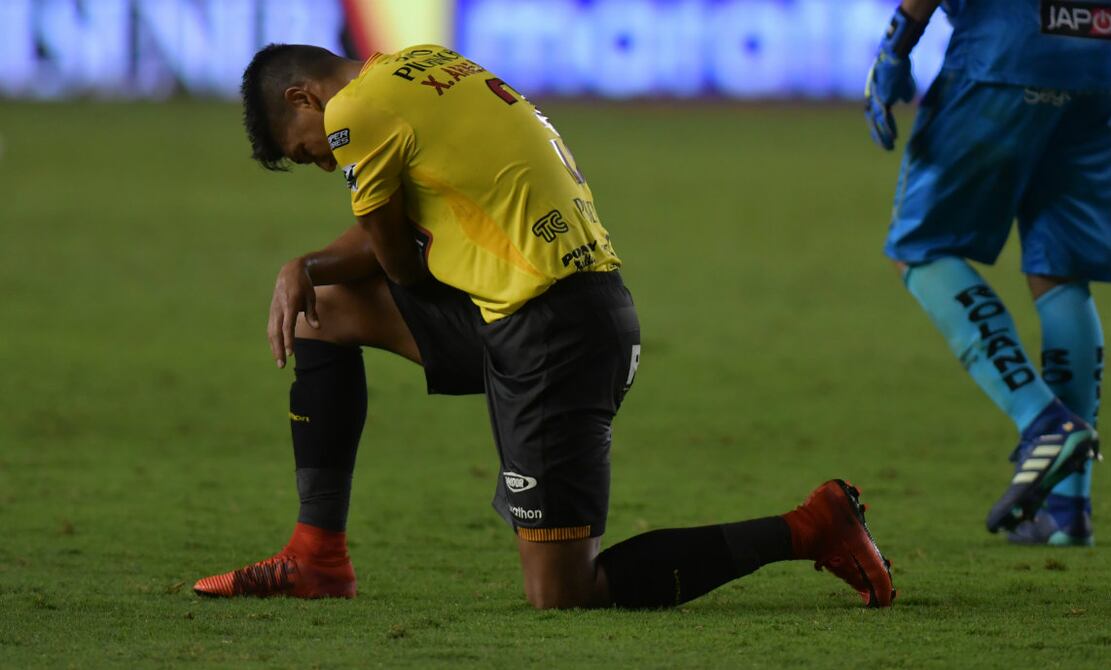 Barcelona dejó escapar una oportunidad inmejorable de acercarse al puntero Liga de Quito (38 puntos) al ceder un empate 1-1 con Aucas, este domingo, en el estadio Monumental.