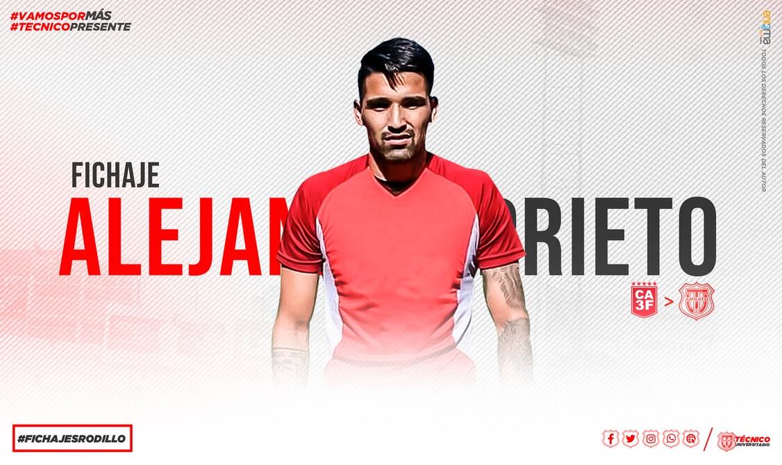 El defensa central Alejandro Prieto, uruguayo de 27 años de edad, es el segundo fichaje de Técnico Universitario de cara a la segunda etapa, en la cual el equipo ambateño buscará revertir los malos resultados y evitar el descenso.