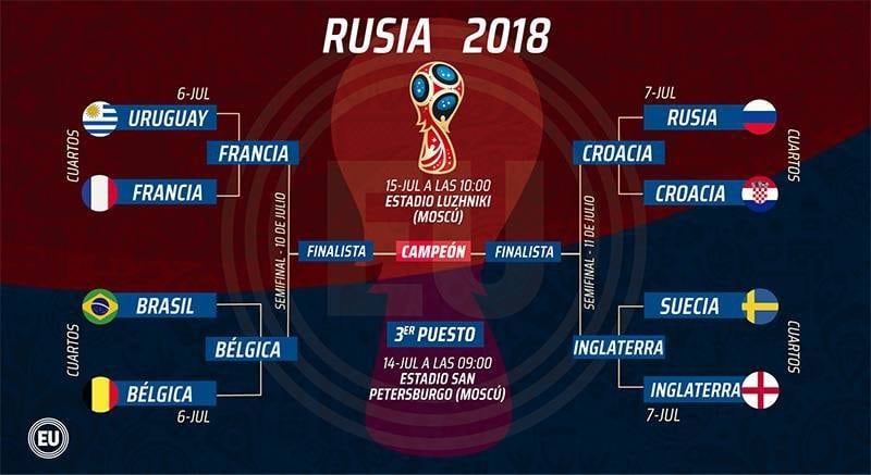 Un equipo europeo se llevará el Mundial de Fútbol. La fiesta final del Mundial será el domingo 15 de julio.