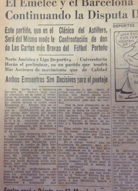 La pasión del que se convertiría en el partido más representativo y tradicional del fútbol ecuatoriano ya existía en 1948, cuando Barcelona y Emelec tenían apenas un lustro de enfrentamientos en los torneos amateur de la máxima división de la Federación Deportiva del Guayas –el certamen de balompié más importante de la época– y en los amistosos que ambos protagonizaban con inusual bravura. Pero ese duelo no tenía un nombre.