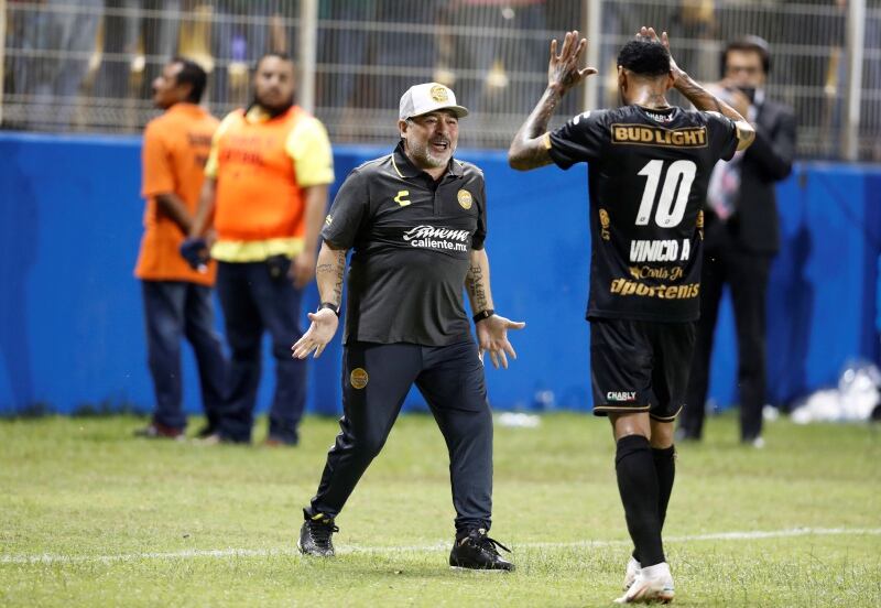 Diego Armando Maradona, entrenador de los Dorados de la segunda división del fútbol mexicano, ofreció firmar 100 balones para recabar recursos que sean destinados a la población perjudicadas por las inusuales lluvias que afectaron al estado de Sinaloa, sede de su equipo.