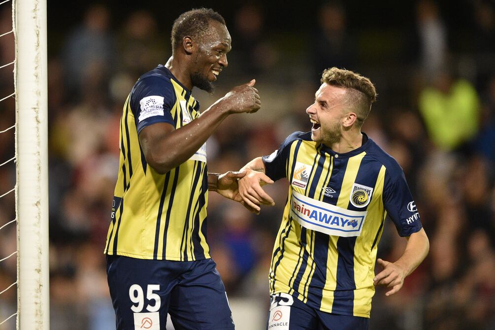 Usain Bolt firmó un doblete al disputar el viernes su primer partido como titular con los Central Coast Mariners, y fue reemplazado a 15 minutos del final, en el duelo de la pretemporada de la primera división del fútbol australiano.