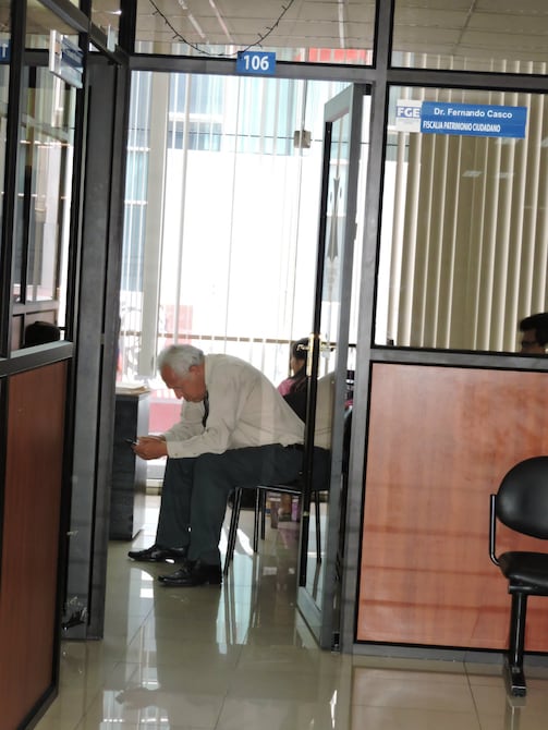 La audiencia para que rinda la versión Genaro Huacón en la fiscalía de la unidad de Patrimonio Ciudadano de Tungurahua en el caso de la denuncia por presunta tentativa de extorsión presentada por Miller Salazar, presidente de Macará, estuvo inicialmente prevista para las 08:30 de este jueves, pero se postergó para las 14:30 del mismo día, hasta la que no llegó ni el denunciado como tampoco su abogado.