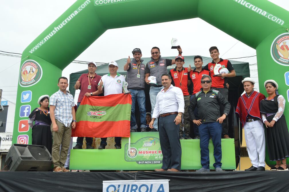 La tarde de este martes se realizó la premiación de la primera y segunda etapas de la Vuelta Automovilística al Ecuador Mushuc Runa/Fedak 2018, en donde los organizadores entregaron los trofeos y medallas a los pilotos que ocuparon los tres primeros lugares en varias categorías.