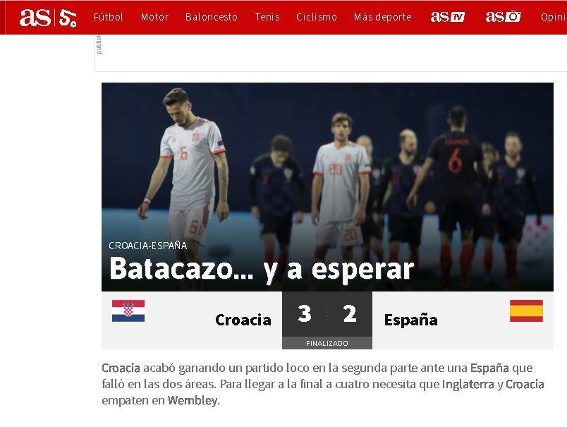 Croacia ganó 3-2 a España in extremis, con doblete de Tin Jedvaj, para seguir soñando con la fase final de la Liga de Naciones, mientras que la Roja queda a expensas de lo que hagan balcánicos e ingleses el domingo en Wembley.