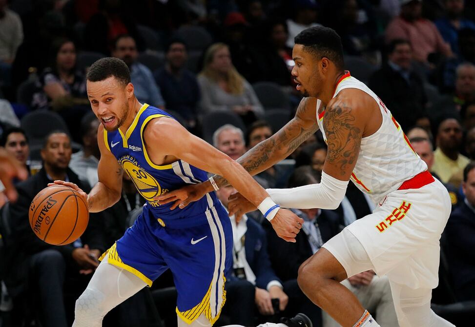 Stephen Curry anotó 30 puntos, Kevin Durant añadió 28 y Clay Thompson ayudó con 27 para que los Warriors de Golden State (4° clasificado de conferencia) arrollaran el lunes 128-111 a los Hawks de Atlanta (15°), con lo cual cortaron una racha de seis derrotas consecutivas como visitantes.
