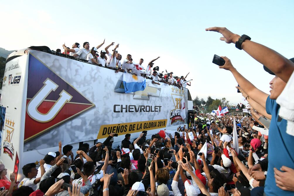 Una multitud copó esta tarde la Plaza Indoamérica -en el norte de la capital- una vez que Liga de Quito se coronó campeón del fútbol ecuatoriano, y sumó su título número 11 a nivel nacional. Superó en la final a Emelec, al que empató 1-1 en la ida -el pasado miércoles- y hoy venció 1-0 en el Rodrigo Paz Delgado.