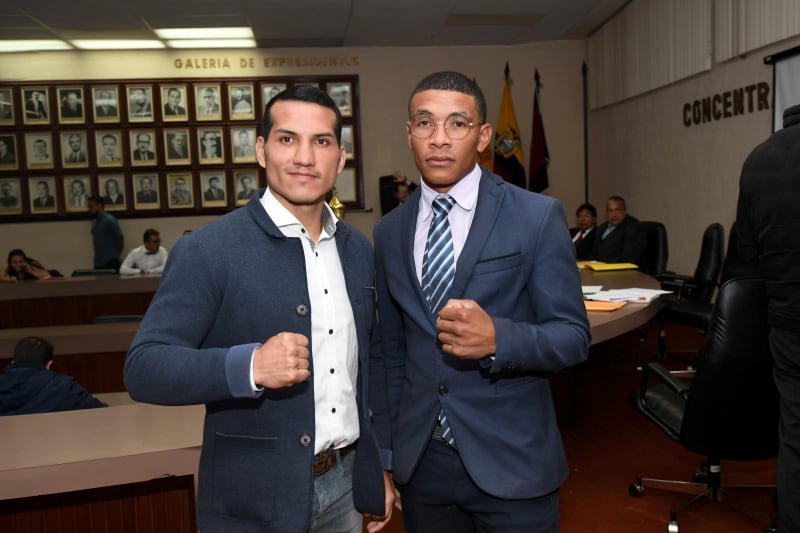 Jack Culcay (i), que radica en Alemania, y Érick Bone, de 30 años, quien fue galardonado en la Noche del Boxeo Ecuatoriano por la Comisión Profesional de este deporte que reconoció a los más destacados de la temporada 2018.