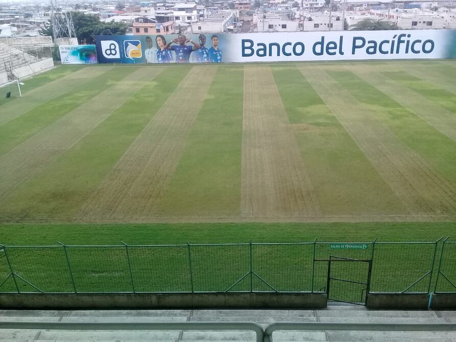 Tras el fuerte aguacero del pasado jueves, que dejó anegada la cancha del Jocay, el gramado del estadio está listo para el cotejo de este domingo entre Delfín y Emelec (18:30).