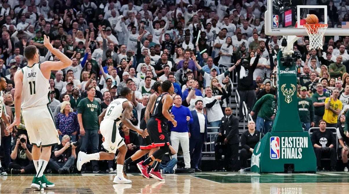El poste estadounidense de parentesco cubano Brook López anotó 29 puntos y los Milwaukee Bucks remontaron y vencieron este miércoles 108-100 a los Toronto Raptors para ponerse arriba 1-0 en la final de la Conferencia Este de la NBA.
