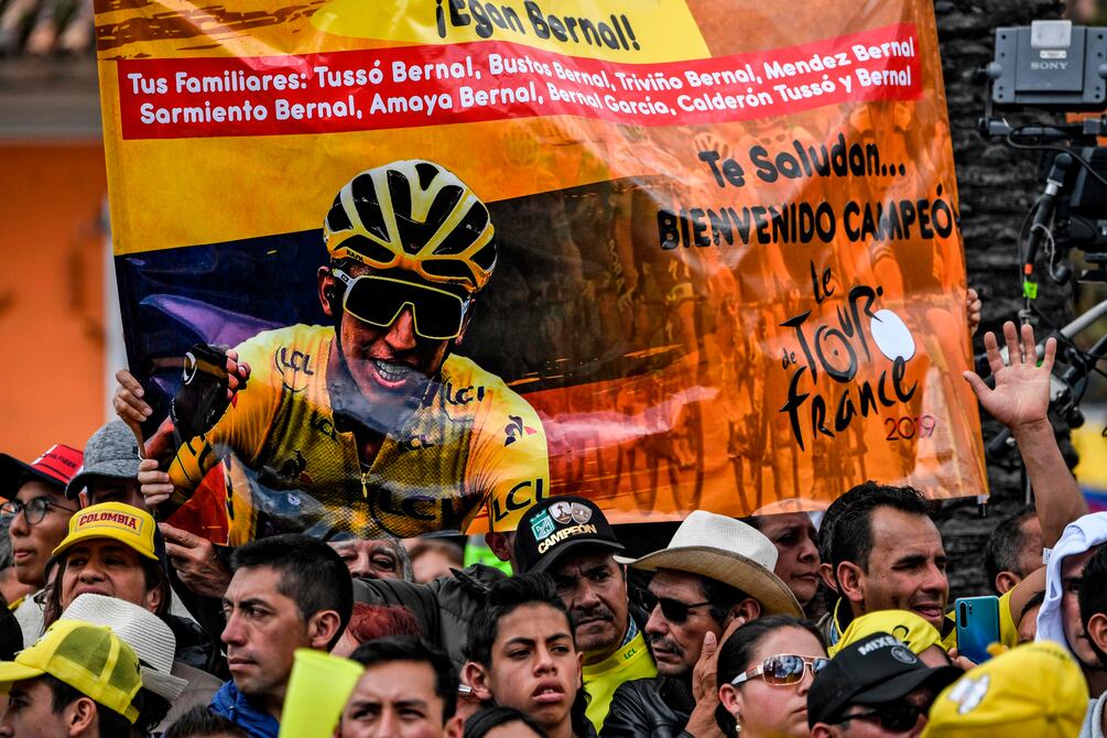 Miles de entusiastas aficionados recibieron con una fiesta popular a Egan Bernal, el campeón del Tour de Francia, en su pueblo natal, festejando la primera vez que un latinoamericano gana la carrera más prestigiosa del ciclismo.