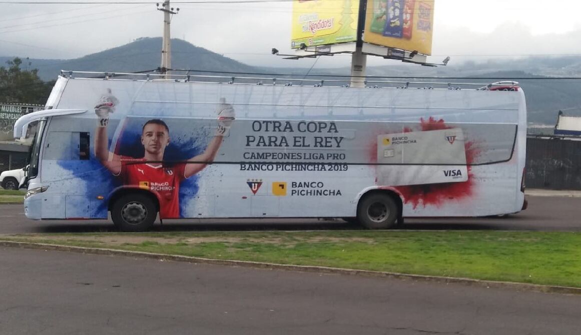 Un día después de que Liga de Quito perdiera la final de la LigaPro ante Delfín de Manta y tuviera que conformarse con el subcampeonato, este lunes 16 de diciembre, en las redes sociales se comenzaron a publicar fotos de un autobús con una leyenda alusiva a que el club albo iba a ser el monarca de la temporada.