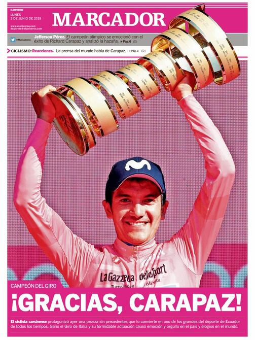 El país aún se estremece de emoción al recordar el 2 de junio de 2019, cuando el carchense Richard Carapaz protagonizó una proeza sin precedentes que de manera inmediata lo convirtió en uno de los más grandes deportistas ecuatorianos de todas las épocas: ganó el Giro de Italia, una de las tradicionales pruebas ciclísticas del planeta (su primera edición fue en 1909).