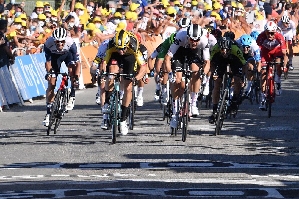 Van Aert se impuso en el sprint final tras una jornada en la que los grandes equipos no permitieron escapadas. Adam Yates es el nuevo líder.