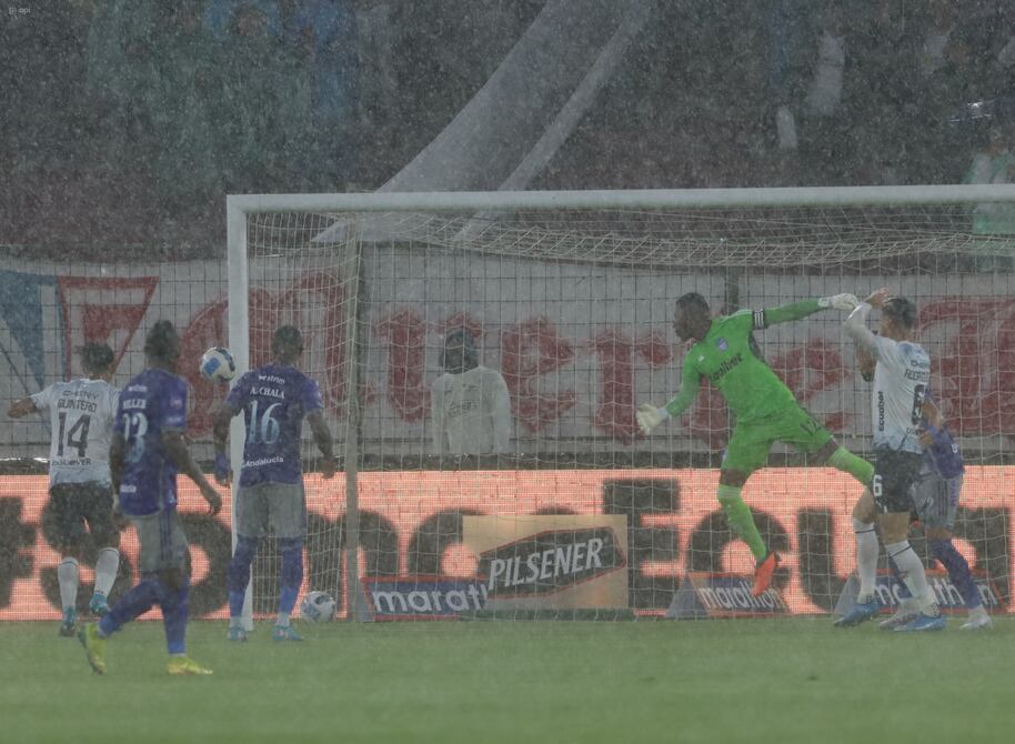 El partido Liga de Quito vs. Emelec se suspendió por lluvia y tormenta eléctrica. El juego en el estadio Rodrigo Paz se reanudará el lunes desde las 12:00.