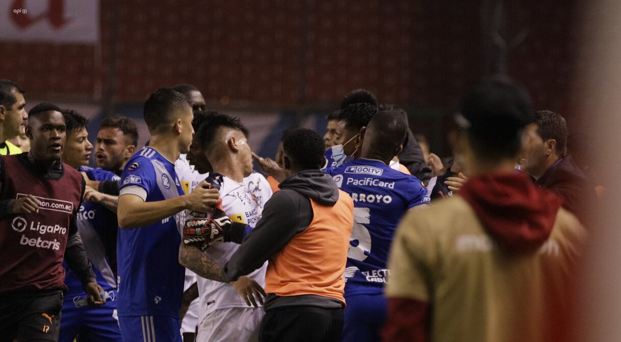 La sanción aplicada a jugadores de Liga de Quito y Emelec tras intervenir como sujetos activos “en pelea tumultuaria” en la fecha 7 de la LigaPro quedó sin efecto tras la apelación presentada por los clubes, un castigo que pasó de uno y dos meses a uno y dos partidos, resolución que dejó inconformidad en los albos.