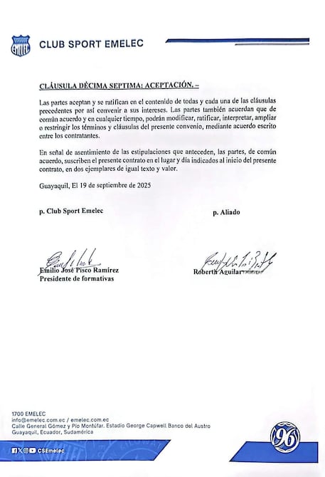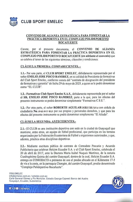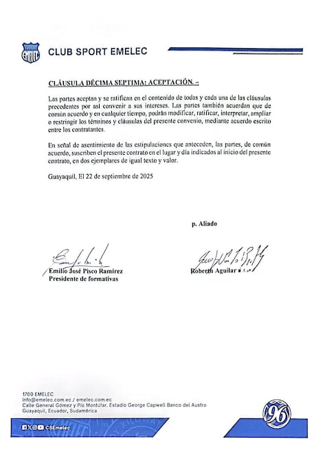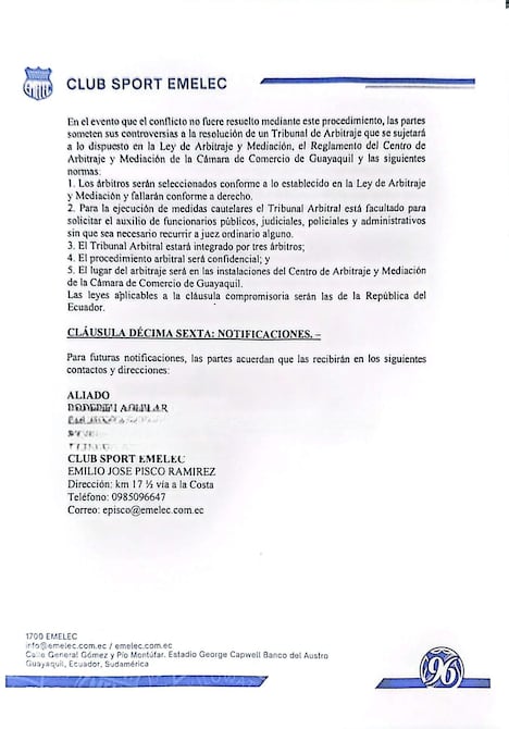 Posteriormente, Pisco renunció a Emelec. “La verdad es que no renunció, a él lo sacaron. Hablamos con la dirigencia, les mostramos los documentos notarizados y ellos nos dieron su apoyo. El síndico del club nos dijo que les había hecho lo mismo a siete personas más”.