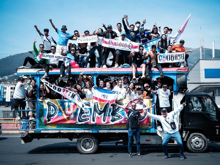 Miles de hinchas se concentraron desde temprano en la Tribuna del Sur, la plaza de la Indoamérica y el bulevar de los Shyris, desde donde partieron en autos, chivas y vehículos decorados con banderas blancas rumbo a Casa Blanca, generando un ambiente festivo y multitudinario.