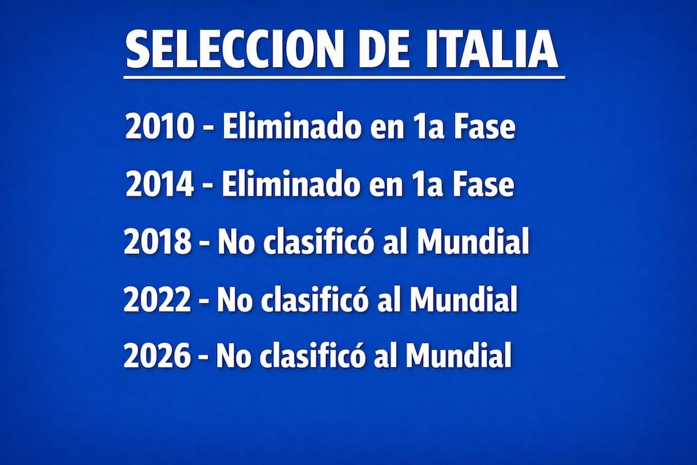 Sí, podemos decirlo sin temor a lastimar: es una ex potencia del fútbol. Que puede volver algún día, hoy es una ex. Aunque parezca insólito, los niños nacidos hace 12 ó 15 años no vieron a Italia jugar un Mundial. Para el 2030 habrá una generación de bambini que no pudieron ver a la Azzurra en esa fiesta grande. Y decenas de miles de italo-norteamericanos que esperaban llenar los estadios de Boston o Nueva York ya estarán vendiendo sus entradas.