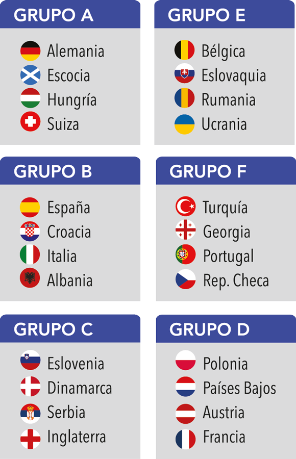 El primer partido de la fase de grupos arrancará el 14 de junio con el encuentro inaugural entre el anfitrión Alemania, que recibirá a la selección de Escocia, en el Munich Football Arena.