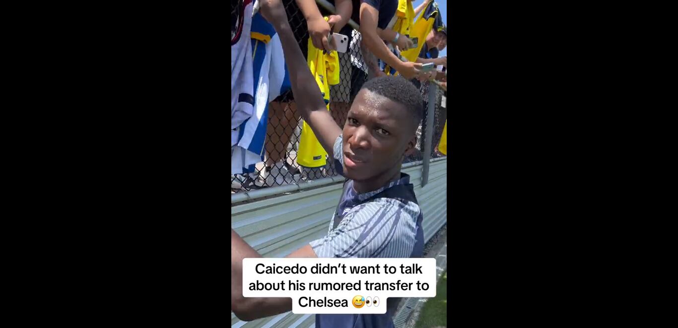 Mientras el community manager del Brighton & Hove Albion hizo un acercamiento de Moisés Caicedo con los fanáticos del equipo, aprovechando la presencia de la colonia ecuatoriana en un entrenamiento de los Seagulls en una ciudad de Estados Unidos, un vlogger abordó al mediocampista mientras firmaba autógrafos.