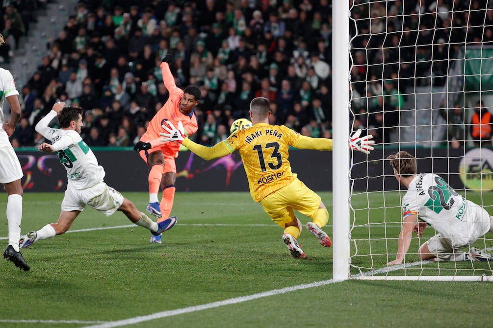 Después, el Elche falló casi lo inverosímil. Martín Neto tiró varios recortes dentro del área para superar las marcas del Barça y dejar la pelota a Adam Boayar (64′), quien remató desviado con todo a su favor.