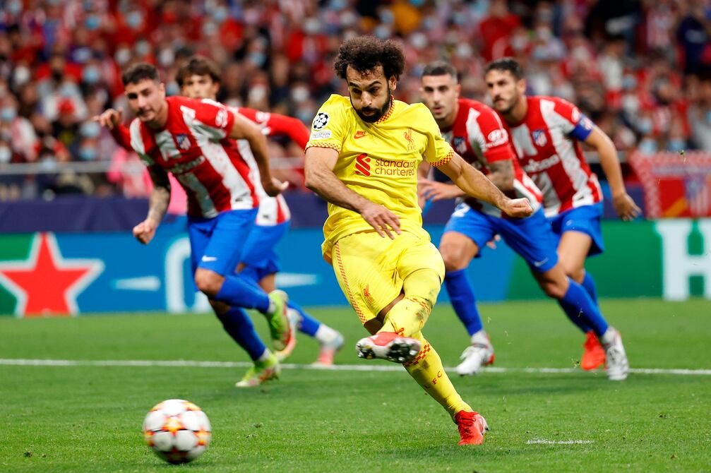 Un penal transformado por Mohamed Salah dio la victoria 3-2 al Liverpool en el campo del Atlético de Madrid este martes, pese a un doblete de Antoine Griezmann, para mantener al club inglés al frente del grupo B de la Liga de Campeones.