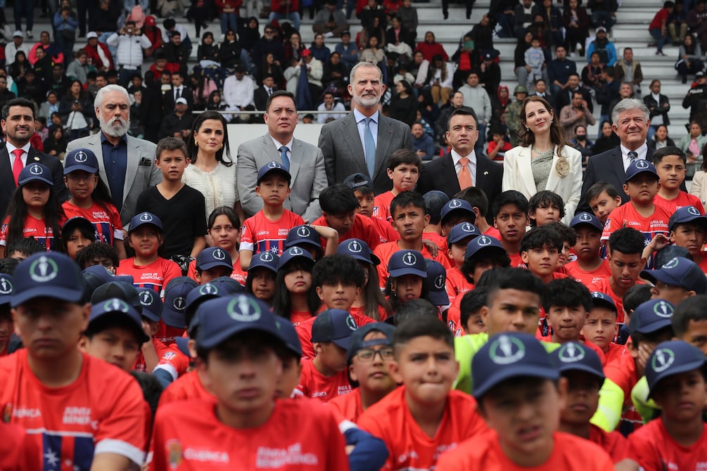 Felipe VI visitó la escuela de fútbol de la Junta de Beneficencia de Guayaquil y el Atlético de Madrid en la ciudad de Cuenca, proyecto en el que participan 600 niños y que tiene como objetivo alejar a los jóvenes de la violencia a través del deporte.