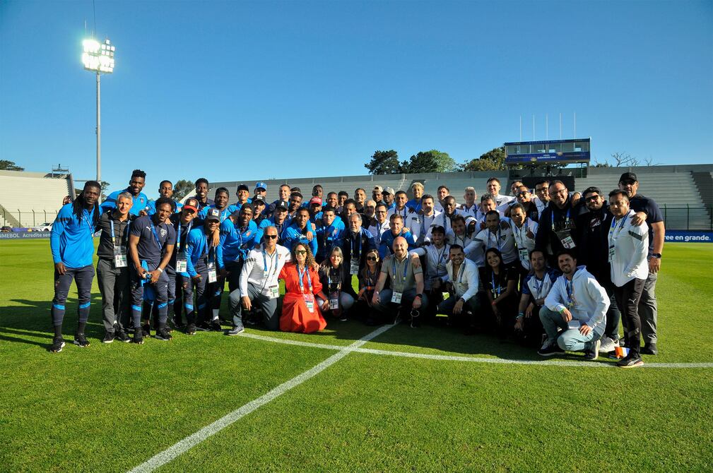 Emocionado, hasta quebrarse, Esteban Paz habló frente a la delegación de Liga de Quito presente en Uruguay para la final de la Copa Sudamericana.