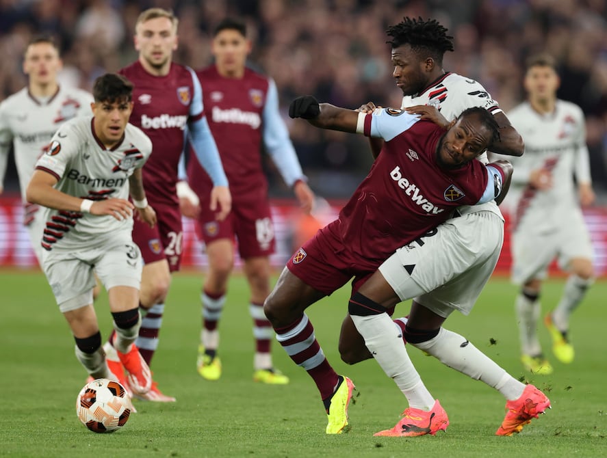 El Bayer Leverkusen, con el defensa ecuatoriano Piero Hincapié, salvó a última hora su condición de invicto esta temporada, gracias a un gol de Jeremie Frimpong en el 89, elevó a 44 su racha de partidos sin perder y se clasificó a semifinales de la Europa League de fútbol gracias a un empate a uno contra el West Ham United.