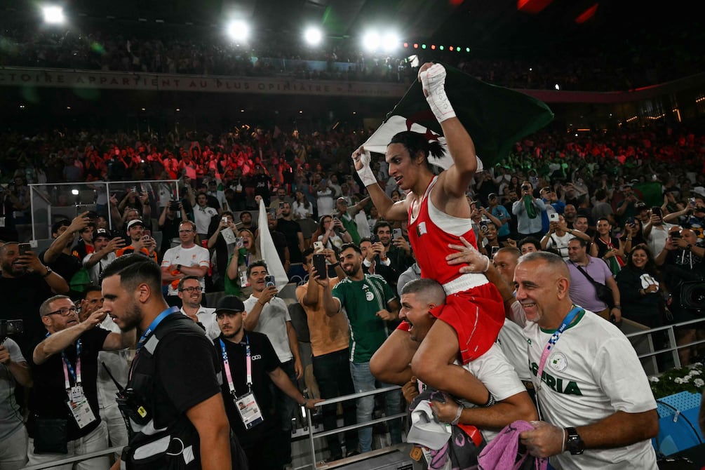 Cientos de argelinos que siguieron la final de boxeo de los Juegos Olímpicos de París 2024 se congregaron este viernes, 9 de agosto, en la plaza Grand Post de Argel para celebrar el oro de Imane Khelif.
