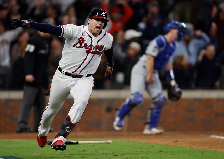 El antesalista Austin Riley jonroneó y conectó el imparable remolcador de la carrera de la victoria de los Bravos de Atlanta, que vencieron 3-2 a los Dodgers de Los Ángeles en el primer juego de la Serie de Campeonato de la Liga Nacional.